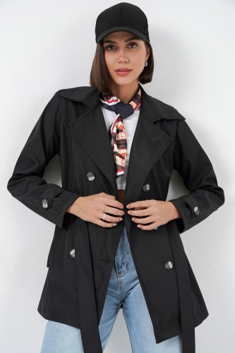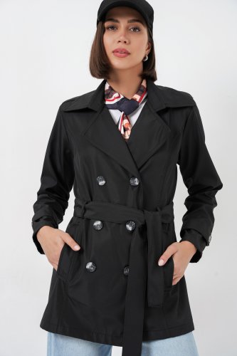 • Kuşaklı Kısa Trençkot 5982 Siyah