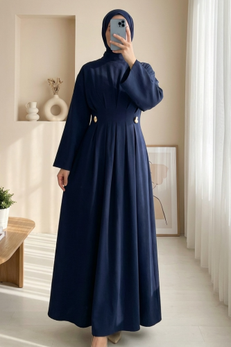 Desenli Uzun Tesettür Elbise 2585 AMavi